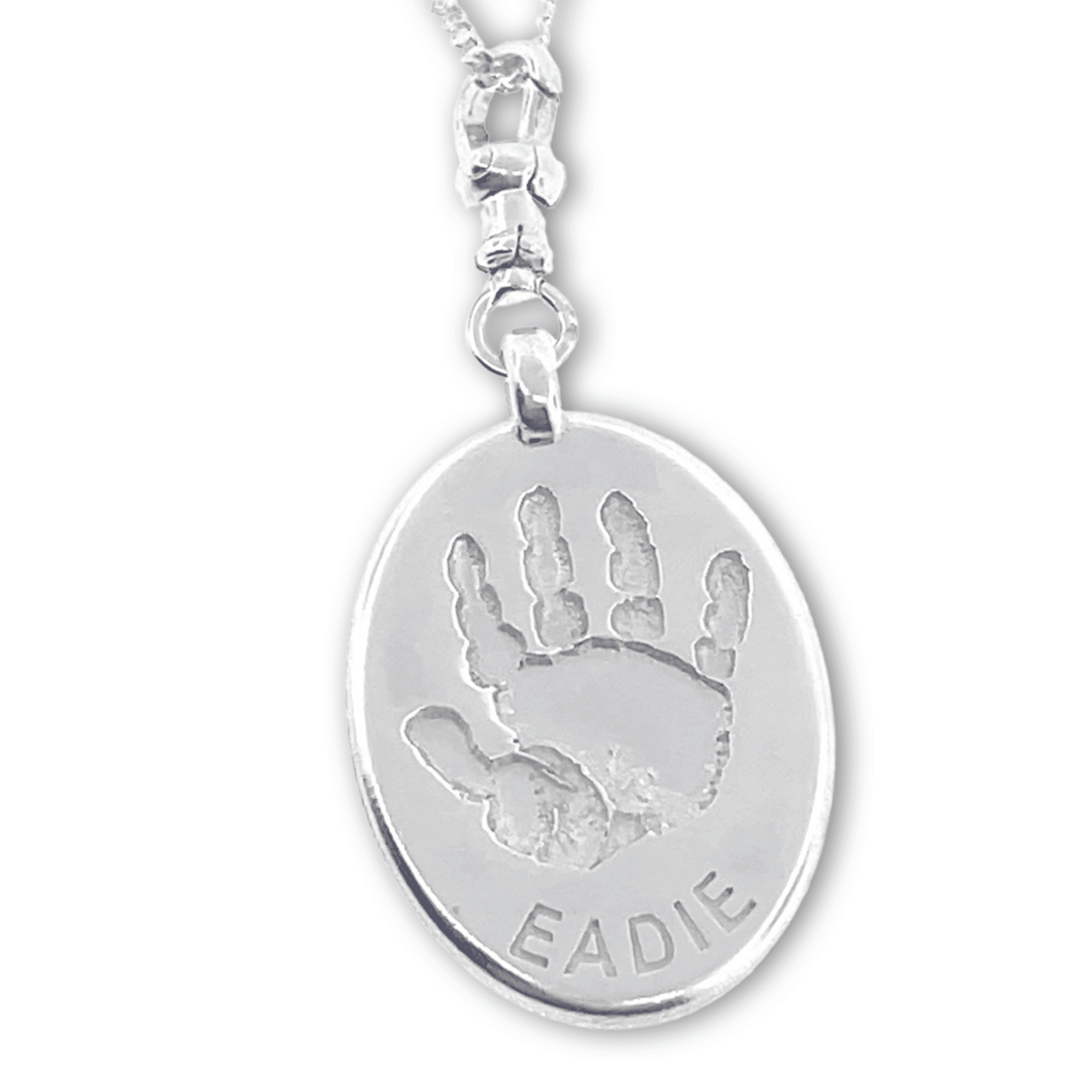 Published October 31, 2022 at 2160 × 2160 in Oval Double Sided Handprint or Footprint || Sterling Silver – Hand Footprint Jewellery