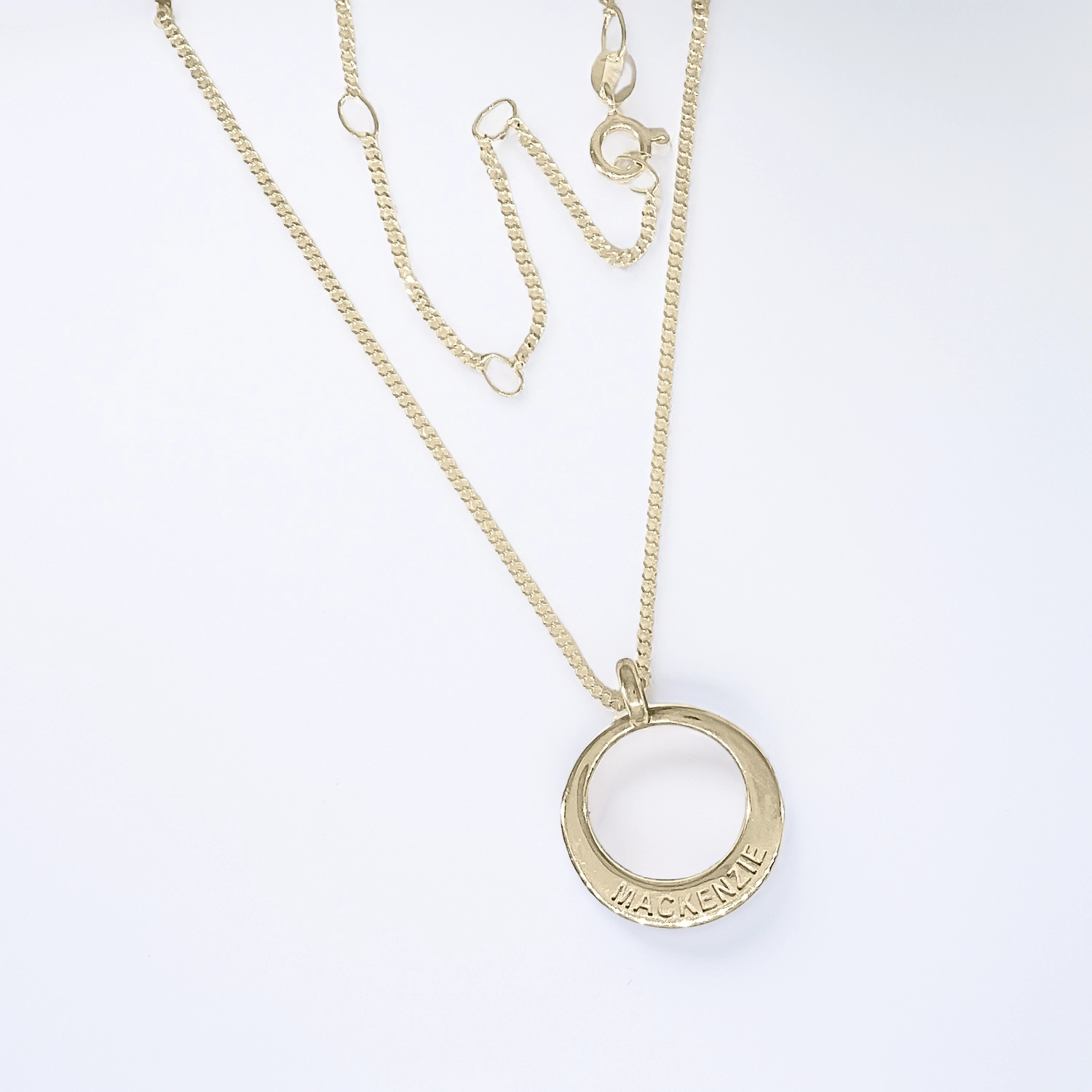name pendant necklace solid 9ct yellow gold circle personalised