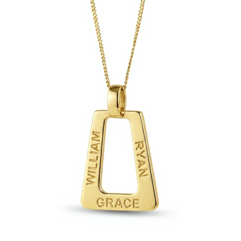 Name necklace pendant 3 name triangle yellow gold uneik jewellery 2