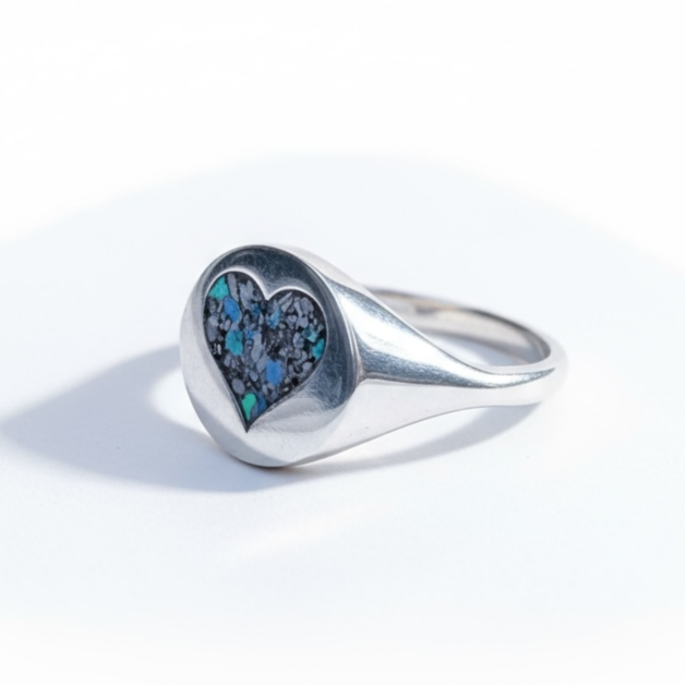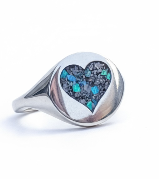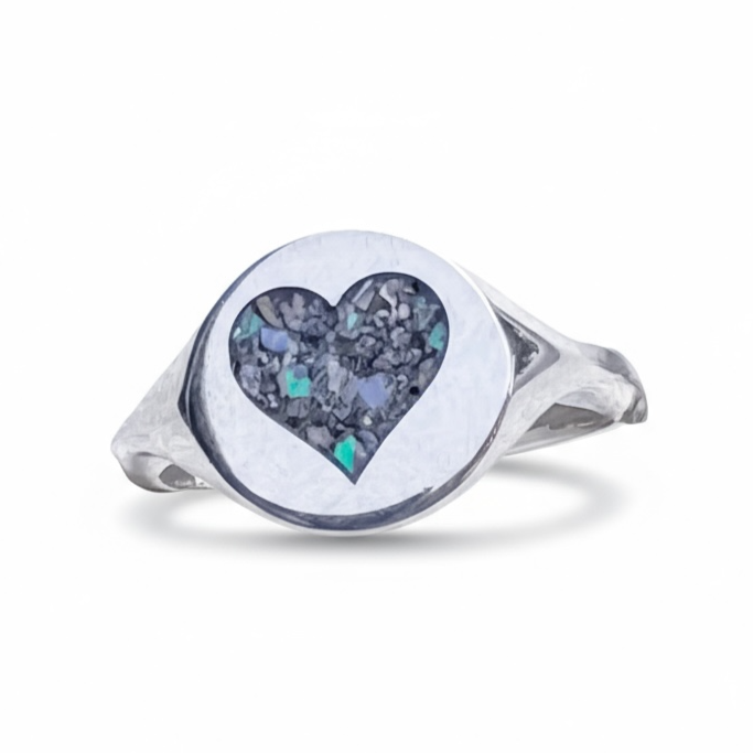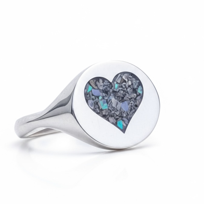 The ring’s head is available in 2 sizes. Each showcases a beautiful heart where you can place your loved one’s ashes.
