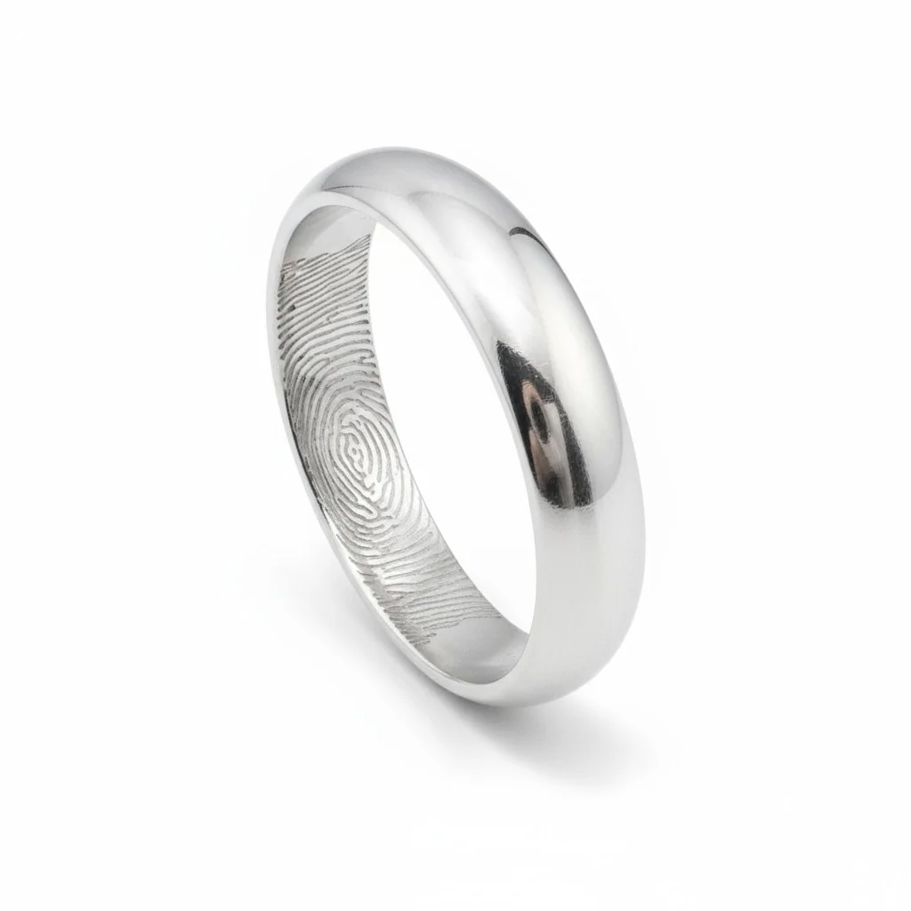- Real fingerprint engraving of your loved one on the inside of the band