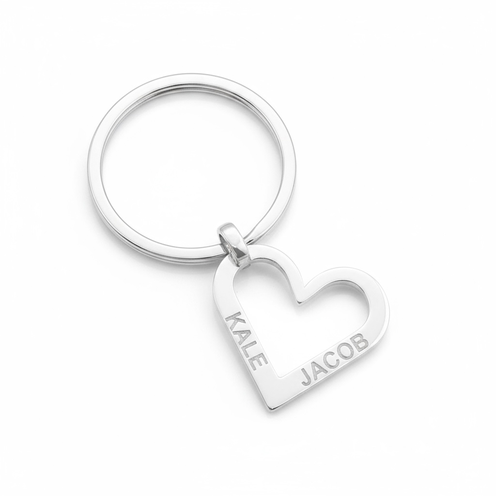 Personalised Heart Two Name Keyring || Sterling Silver. Family and the ones we love are special and dear to us all. Having the names of those loved ones in a Uneik Jewellery piece allows you to celebrate those special to you. It gives you something to hold when they are missed, a reminder that they are always with you, or a way to express how proud you are to have them in your life. A precious jewellery piece made especially for you to treasure always. Personalised the way you want it. Use names, birthdates, sayings, or coordinates – it’s up to you!